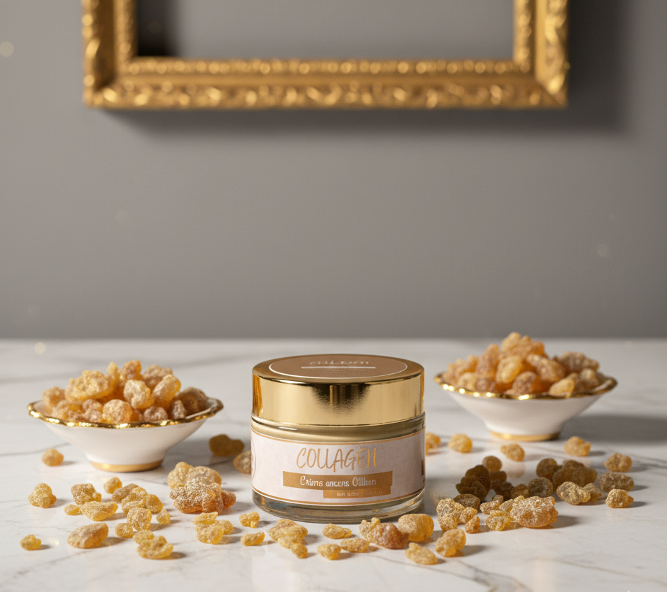 Crème Collagène Encens Oliban & Acide hyaluronique // Extrait Réglisse, Extrait Centella: anti-rides, anti-taches, Sa formule riche en huiles précieuses et en actifs hydratants préserve la barrière cutanée et offre un éclat naturel.