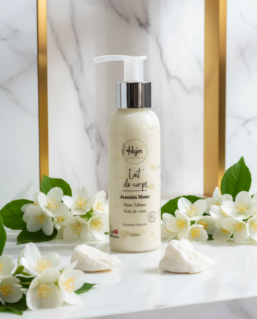 Découvrez une nouvelle dimension de bien-être avec le Lait Corps Jasmin-Musc, une formule sensorielle qui hydrate intensément la peau tout en l’enveloppant d’un voile parfumé aux notes florales riches et enivrantes.